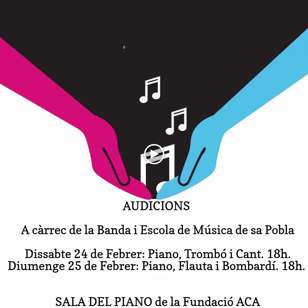 - DIUMENGE A LES 18h AUDICIÓ DELS ALUMNES DE FLAUTA I BOMBARDÍ I DE LA RESTA D'ALUMNES DE PIANO